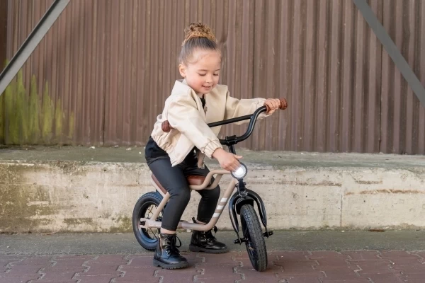 Cool, kompakt und bereit für Abenteuer: Dieses Fatbike-Laufrad ist das perfekte erste Fahrrad für kleine Entdecker ab 2 Jahren! Mit seinem robusten Rahmen, den schwarzen 10-Zoll-Luftreifen und dem bequemen Sattel verbindet es ein auffälliges Design mit optimaler Stabilität und Benutzerfreundlichkeit. Das Laufrad ist mit einem festen Lenker (58 cm) und Sattel (32 cm) ausgestattet. An der Vorderseite befindet sich ein cooles Extra: ein echt funktionierender Scheinwerfer (3 AAA-Batterien nicht im Lieferumfang enthalten), damit dein Kind bei jeder Fahrt gut sichtbar ist. Dank des coolen Fatbike-Designs stiehlt dieses Laufrad garantiert allen die Show. Ein echter Hingucker für kleine Fahrer!