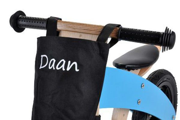 Coole schwarze Lenkertasche mit aufgedrucktem Namen. Lassen Sie den Namen Ihres Kindes (max. 10 Zeichen, 1 Reihe) auf diese Lenkertasche drucken. Dank der Klettbänder lässt sie sich einfach am Lenker des Laufrades befestigen. Ein schönes, individuelles Geschenk für Ihr Kind.