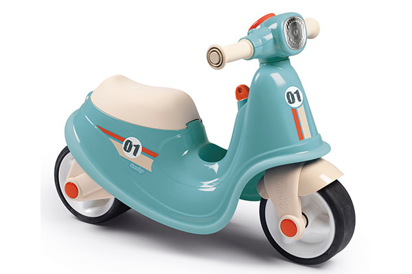Die ersten Schritte zum echten Fahrrad werden auf diesem rosa Rode On Scooter von Smoby gesetzt. Der fröhliche rosa Roller mit tollem Design ist ideal für Fahranfänger. Das Laufrad bietet optimalen Komfort dank der geräuschlosen Reifen. Mit einer Lenkerhöhe von 47,5 cm ist das Laufrad perfekt für Kinder ab 18 Monaten geeignet. Der Scooter sieht aus wie echt dank der coolen Lichter und des mechanischen Schlüssels. Unter dem Sitz ist auch ein praktischer Stauraum für Spielzeug. Herumflitzen war noch nie so toll!